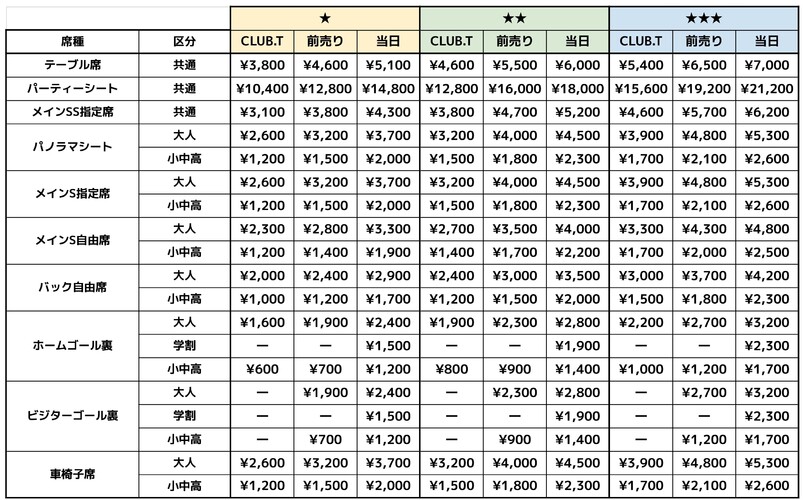 チケット価格につきましては、多くの席種で2025シーズンと同価格とし、より多くの方に引き続きスタジアムへ足を運んでいただきやすい価格設定といたしました。