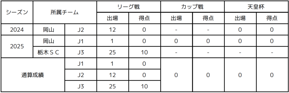 ForestFC京都→セレッソ大阪U-15→ファジアーノ岡山U-18→明治大→ファジアーノ岡山→栃木SC