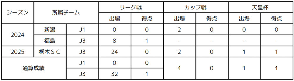 【経歴】大島シェルズSC→川崎フロンターレU-12→川崎フロンターレU-15→川崎フロンターレU-18→早稲田大→アルビレックス新潟→福島ユナイテッドFC→アルビレックス新潟→栃木SC