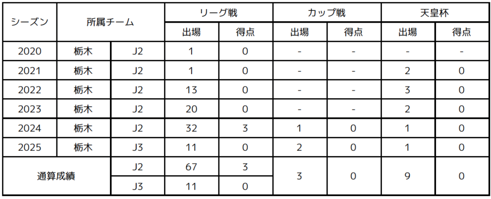 TEAMリフレSC→栃木SCJrユース→栃木SCユース→栃木SC→ラインメール青森
