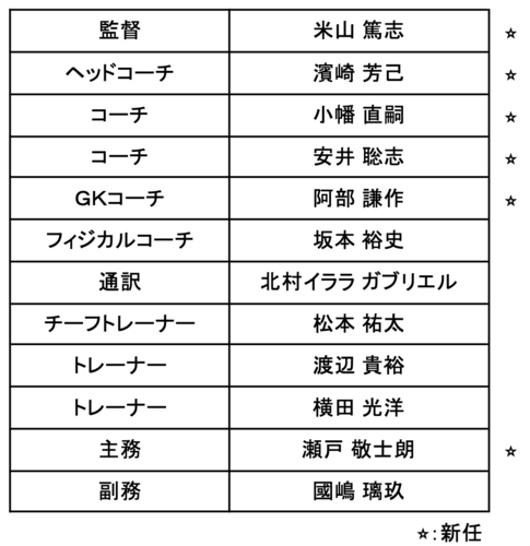 2026シーズン トップチームスタッフ体制のお知らせ