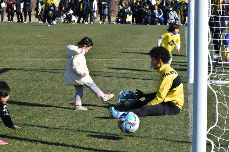 トレーニング後には、芝づくりに関わっていただいた子どもたちがピッチに立ち、ボール遊びを楽しむ時間を設けました。