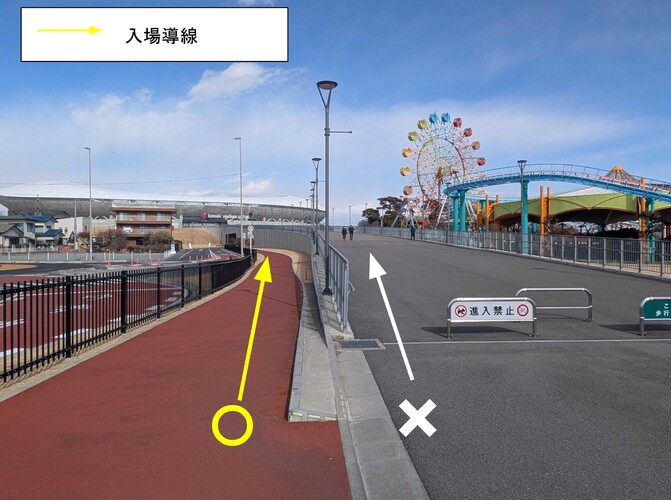 ・ピッチレベルにお入りいただけますが、安全確保のため、指定エリアからは出ないようお願いいたします。