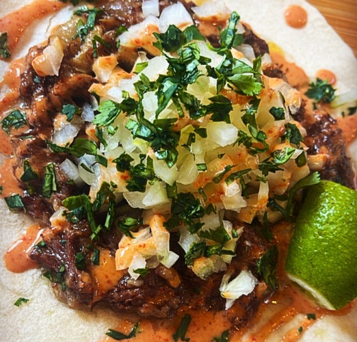 牛タンをほろほろになるまで煮込んで、玉ねぎとコリアンダーオリジナルソースで合わせた絶品タコス!!