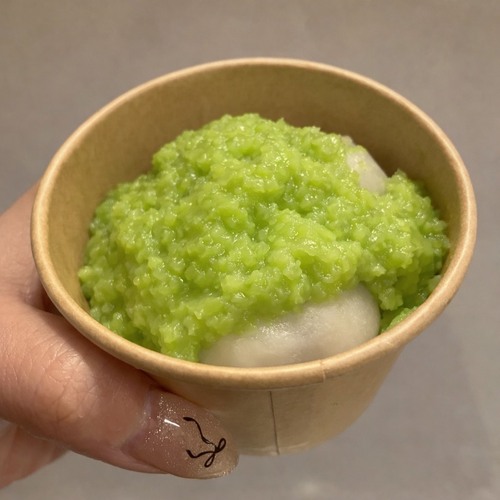 ひとくち大福にたっぷりずんだをかけました♪