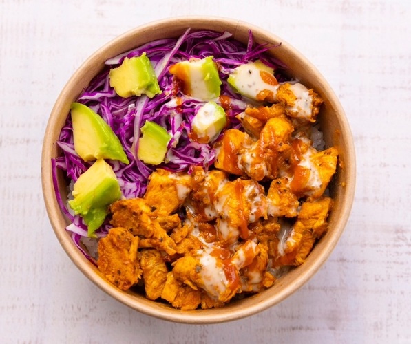 ホットソースとホワイトソースが作り出すスパイシーだけどマイルドな味で、チキンたっぷりご飯が病みつきになること間違いなし!!