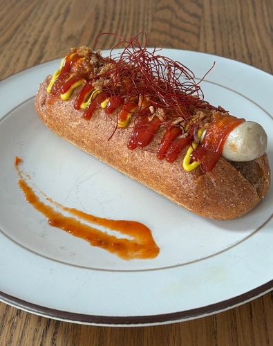 刺激的なハバネロと野菜の旨味が濃縮されたハバネロソースをかけた絶品旨辛ホットドッグです。