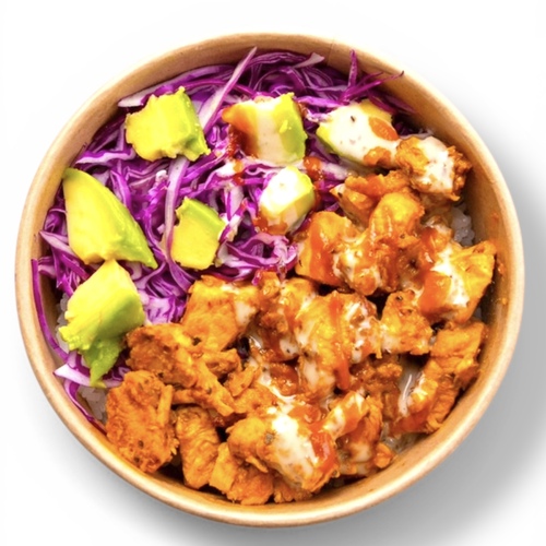 ホットソースとホワイトソースが作り出すスパイシーだけどマイルドな味で、チキンたっぷりご飯が病みつきになること間違いなし!!