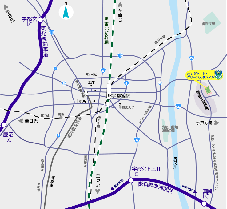 バス:宇都宮駅~清原台3丁目 620円(片道) タクシー:宇都宮駅東口~グリスタ 約3,500円 (片道)