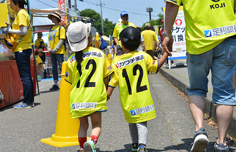 栃木SCのチームカラーであるイエローでコーディネートしてお越しください。栃木SCイエローに身を包み、熱い声援で栃木SCの選手達に力を与えてください。