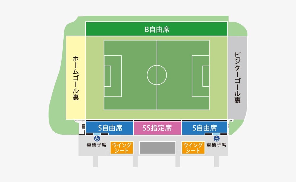 スタジアムには指定席やゴール裏などの座席があるので観戦スタイルに合わせて購入しましょう。