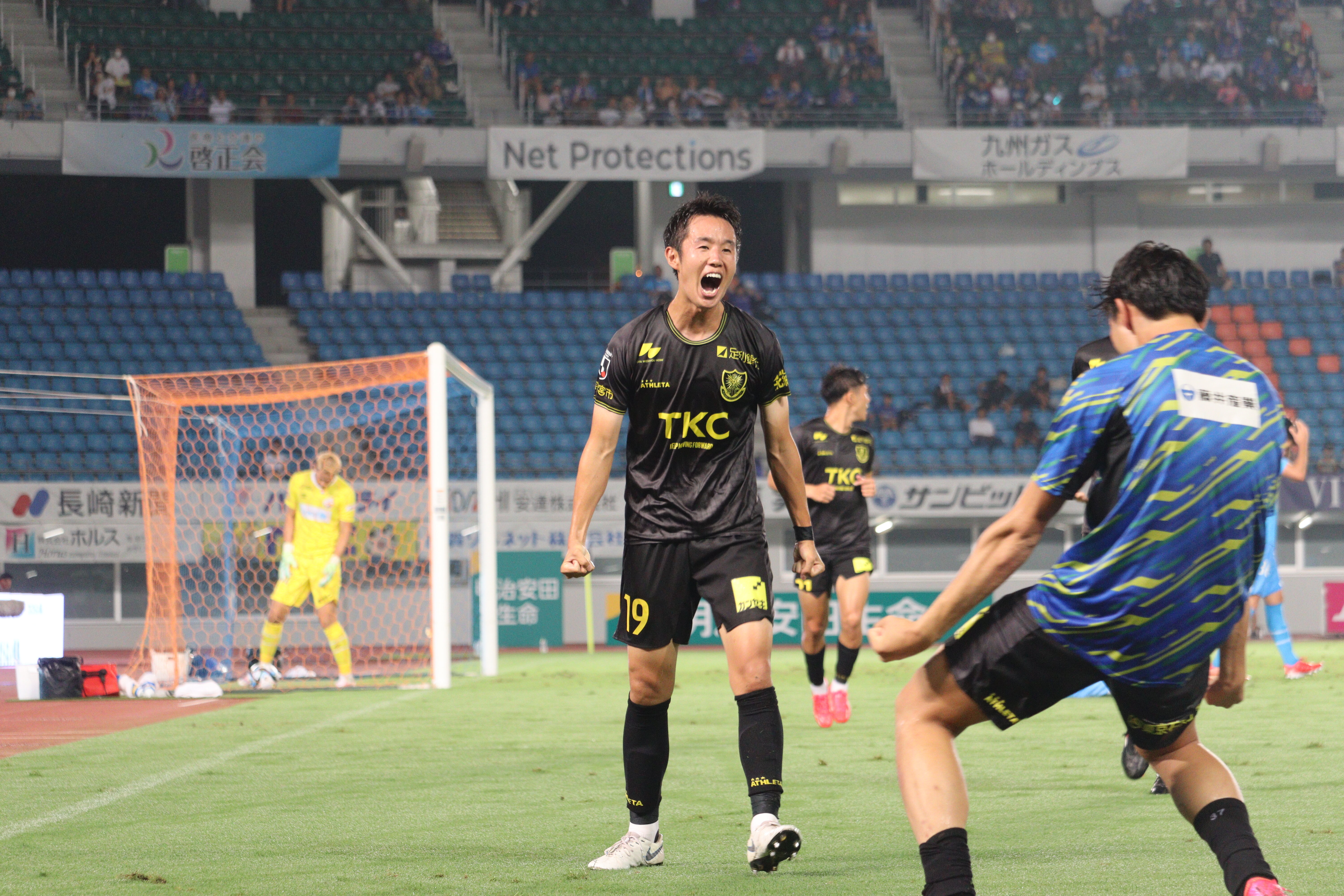 いろいろと言いたいことがありますが、前節、退場者を出してしまって逆転をしてから勝点3までもっていけなかったという悔しさはチーム全体として感じていました。今日は逆に相手に退場者が出ましたが、退場したときの相手の気持ちを踏まえ、焦らずに追いつくことでどれだけメンタル的に厳しくなるのか、僕らは前節で経験できたこともあり、今日は慌てずに自分たちのストロングを出し続けるように試合を進めることができたと思います。今日の勝点3は本当に大きいと思いますし、あと11試合残っていますが、今日の試合をきっかけにして、次ものダービーもホームで勝てるような準備をしていきたいと思っています。また、後半戦が始まってから引き分けも多いのですが、負けない戦いもしっかりとできているので、前節も言いましたが、ネガティブなところに目を向けるのではなく、ポジティブなところをたくさん見つけて、複数得点も連続で取れていること、ゴール前に人が入っていけるようになっていること、今後もこれを続けていくだけだと思います。今日、長崎まで来てくれたサポーターを喜ばせられたことは良かったし、また次のカンセキに来てくれるサポーターを喜ばせられるように今から準備していきたいと思います。