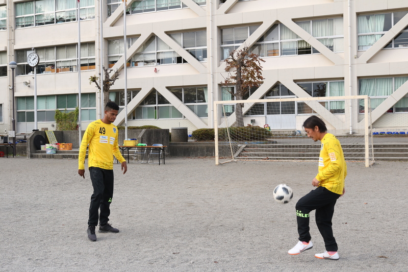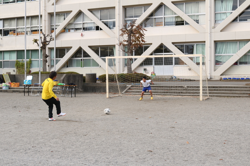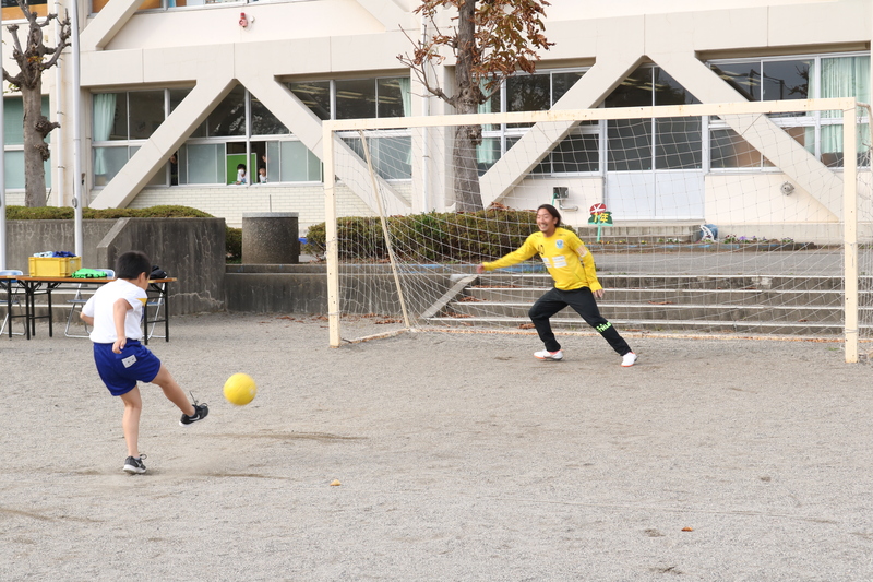 両選手ともさすがプロ。圧倒的な速さでゴール!生徒たちの悔しそうな表情の横で、選手はホッとした様子でした。