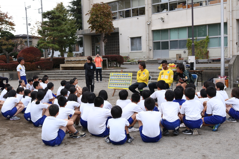 11月8日(木)、宇都宮市立西原小学校を寺田紳一選手、アレックス選手、渡辺ブルーノ英男通訳、金澤祐介コーチ、森川智浩コーチが訪問し同校の6年生を対象に2018年度第16回目の「ゆめプロジェクト」学校訪問事業を実施しました。
