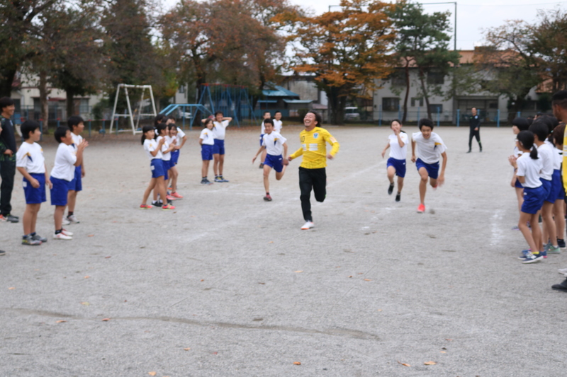 そして最後の質問で、「50メートルのタイムは何秒ですか?」との質問が!アレックス選手が「もしよかったら一緒に走ってもいいよ」と答えると、急遽選手と生徒たちが50m走対決をすることに!ゆめプロジェクト初のまさかの展開!