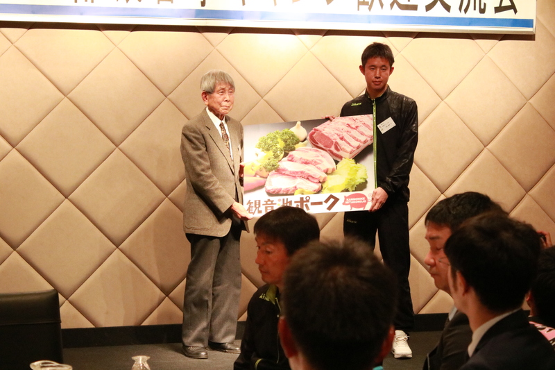 ※荒井選手は未成年のため、お父様に頂いた焼酎を渡していました。