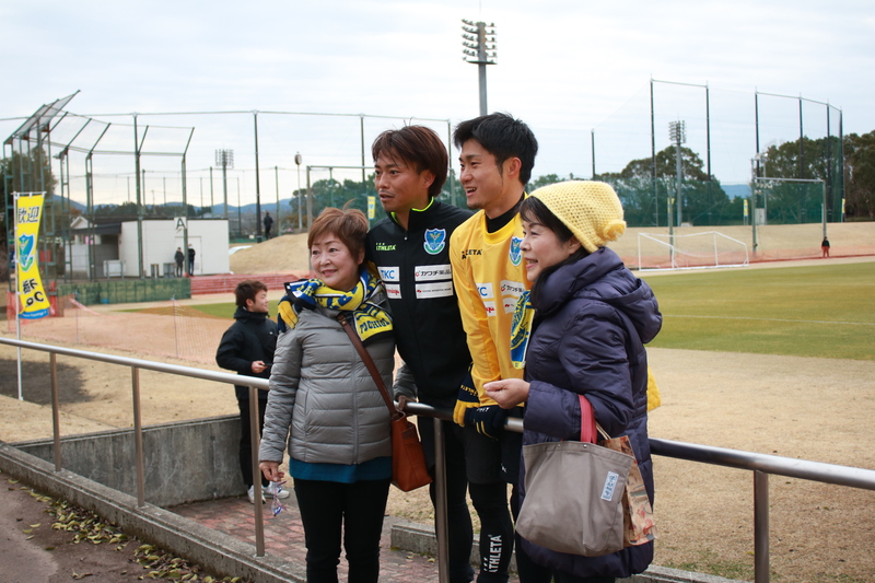 選手と高城の皆さんとサポーターの皆さんで記念撮影!