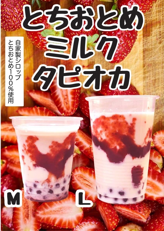 ・生タピオカブラックを使用!自家製とちおとめ100%シロップを使用した『とちおとめミルクタピオカ』や、素材を100%活かしたフレーバーシロップで作られるEightCranesのタピオカドリンク!一度お試し下さい☆