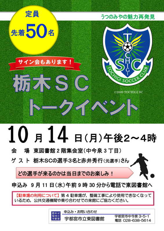 10/14(月)宇都宮市立東図書館にて選手トークショー開催!