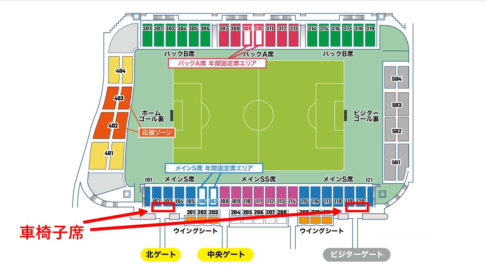 ※メインスタンドの車椅子席が満席となった場合、バックスタンド側の車椅子席をご案内させていただく可能性がございます。