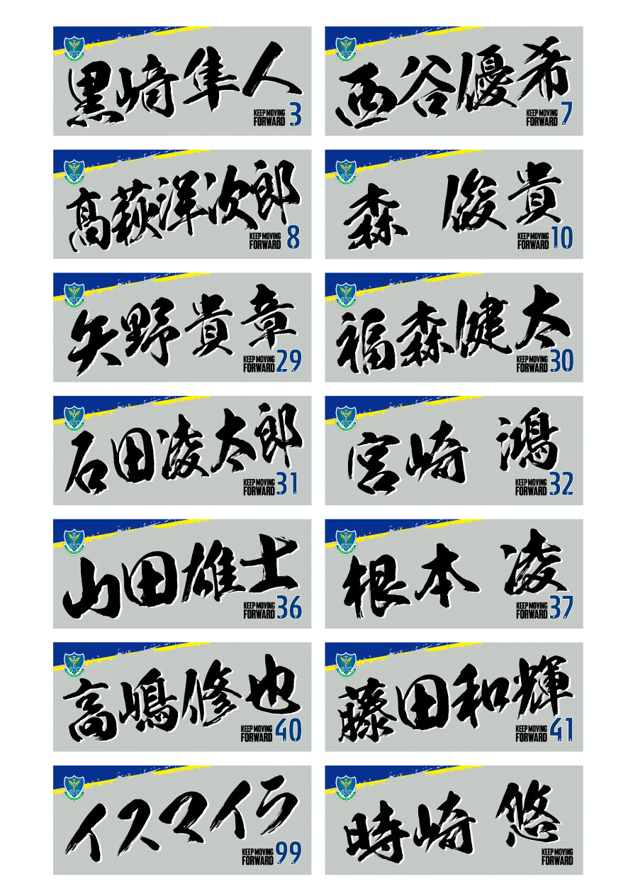 今回は2023夏季限定ユニフォームの選手ネーム&ナンバー加工の注文数が多かったトップ11の選手と新加入の石田選手、イスマイラ選手、そして時崎監督を加えたラインナップとなります!各選手分限りがありますので、お買い逃しなく!