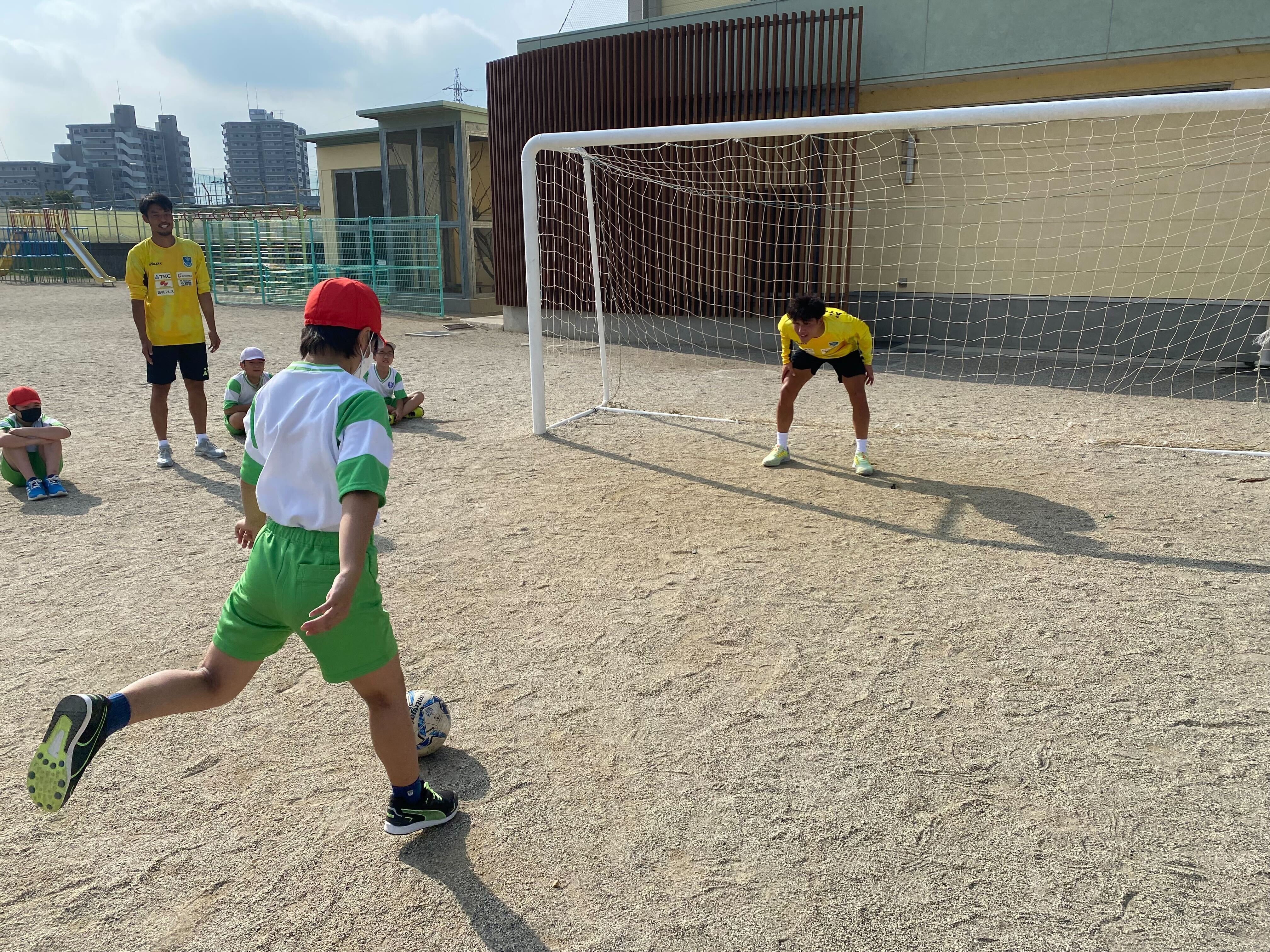 選手が守るゴールに全力でシュートします。