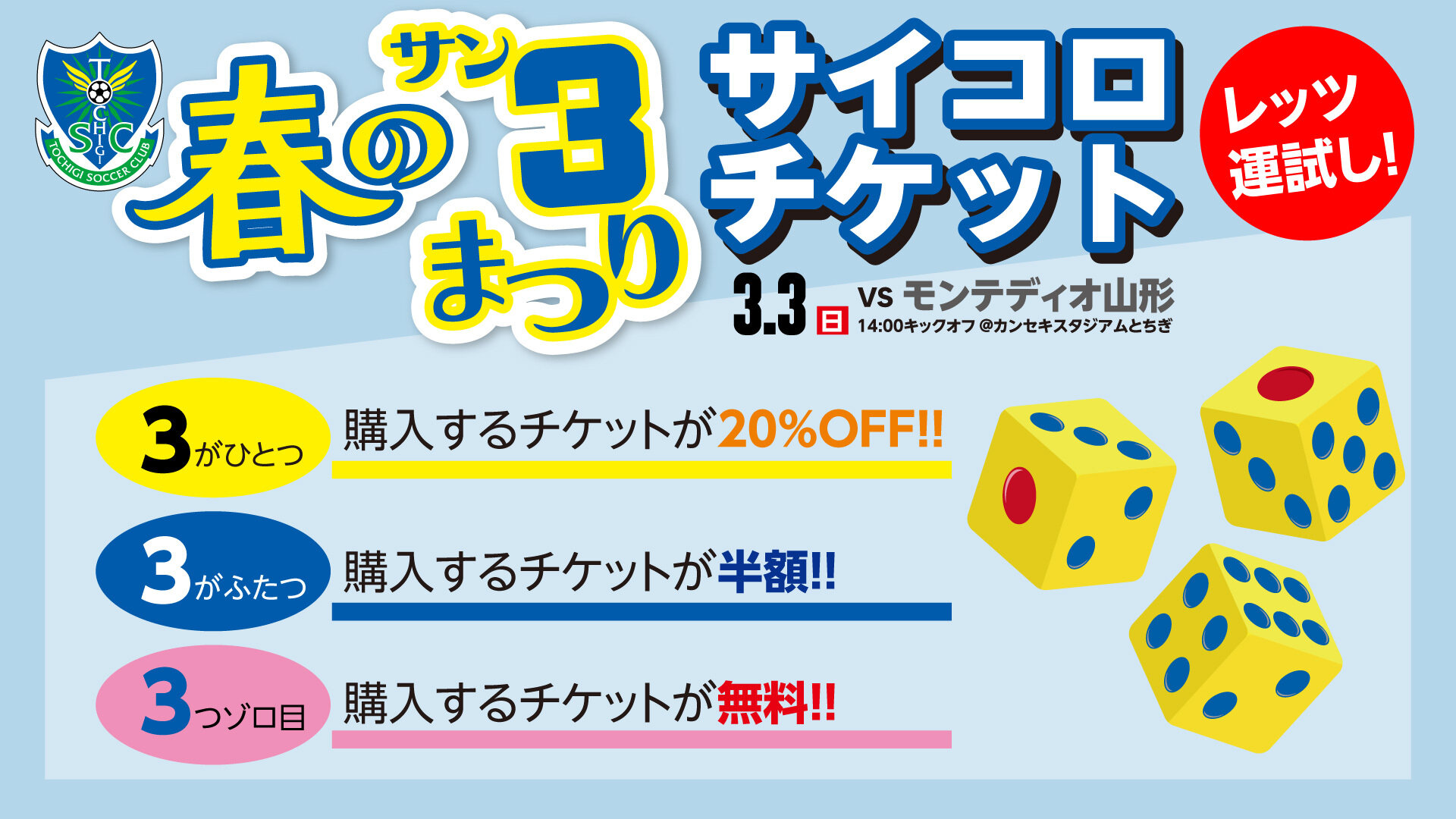 【3/3(日)山形戦】レッツ運試し!春の3まつりサイコロチケット企画のお知らせ