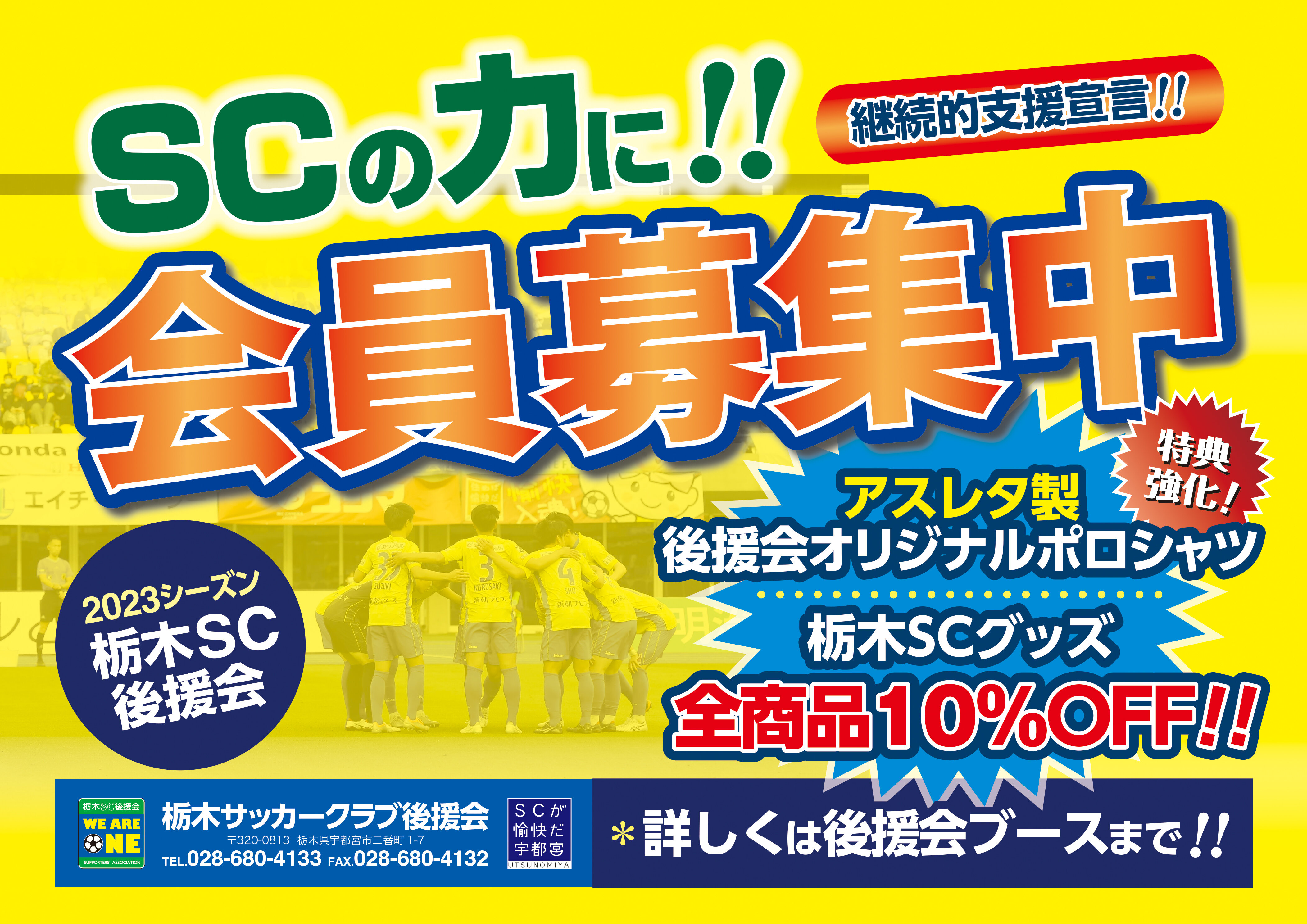 この度、栃木サッカークラブ後援会では2023年度の会員募集を先日の群馬戦からスタートいたしましたのお知らせいたします。