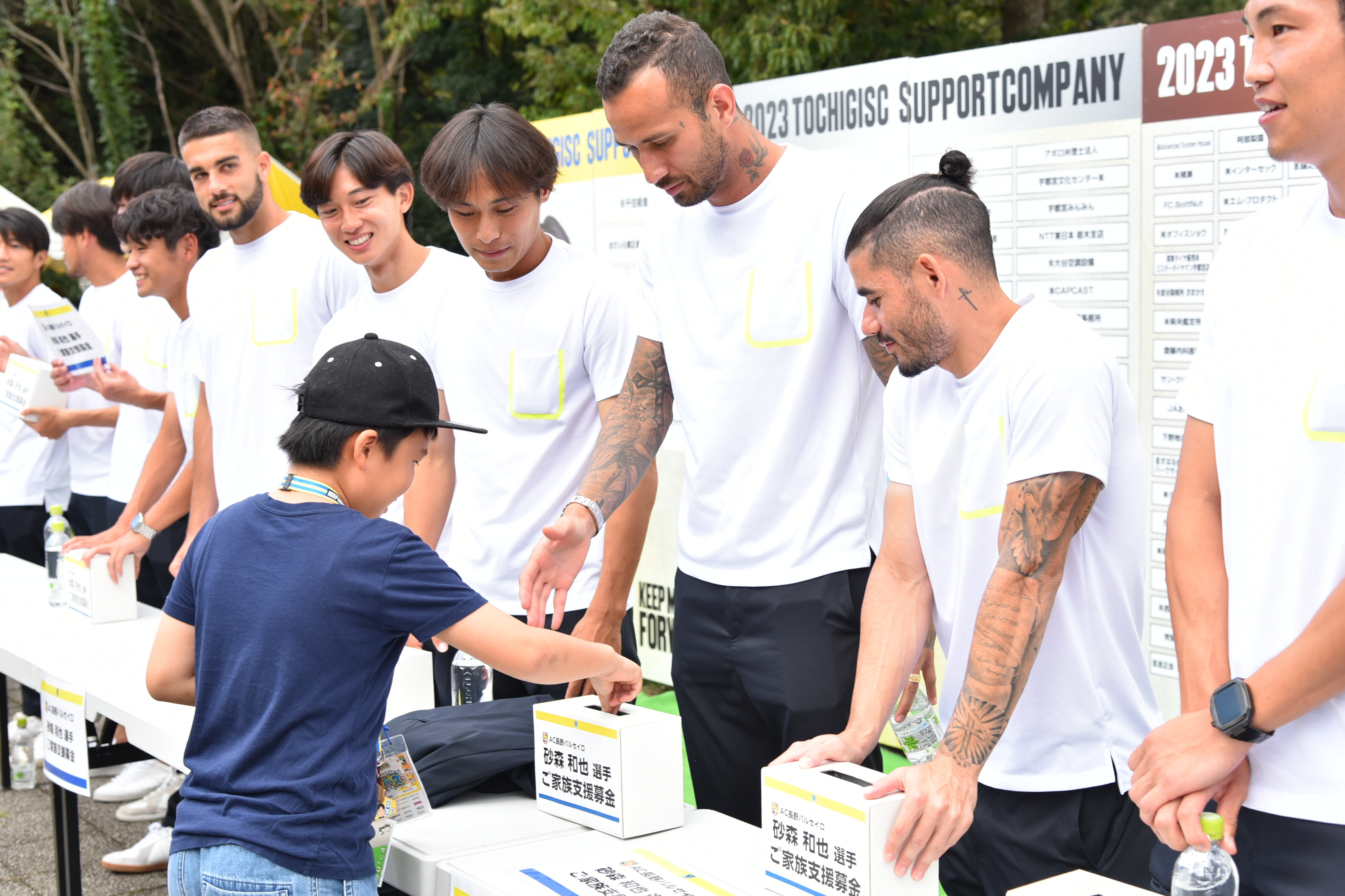 10月1日(日)ブラウブリッツ秋田戦の試合会場ならびに栃木SCオフィシャルショップ トッキースクエアにおいて、AC長野パルセイロ所属の砂森和也 選手とご家族をサポートすることを目的とした「砂森和也選手ご家族支援募金」を実施しましたのでご報告いたします。