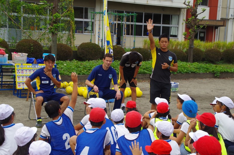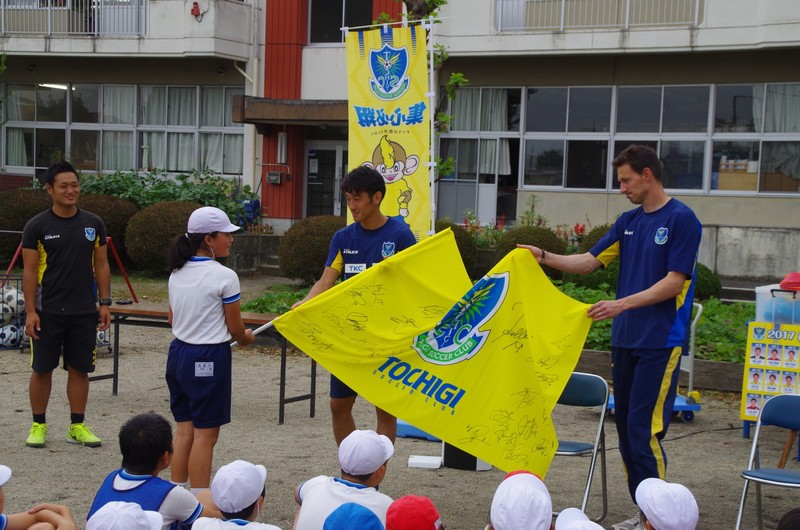 9月20日(水)に宇都宮市立海道小学校を牛之濵拓選手、ジョニーレオーニ選手、黒沢健太スクールコーチが訪問し、同校の5、6年生を対象に2017年度第10回目の「ゆめプロジェクト」学校訪問事業を実施しました。