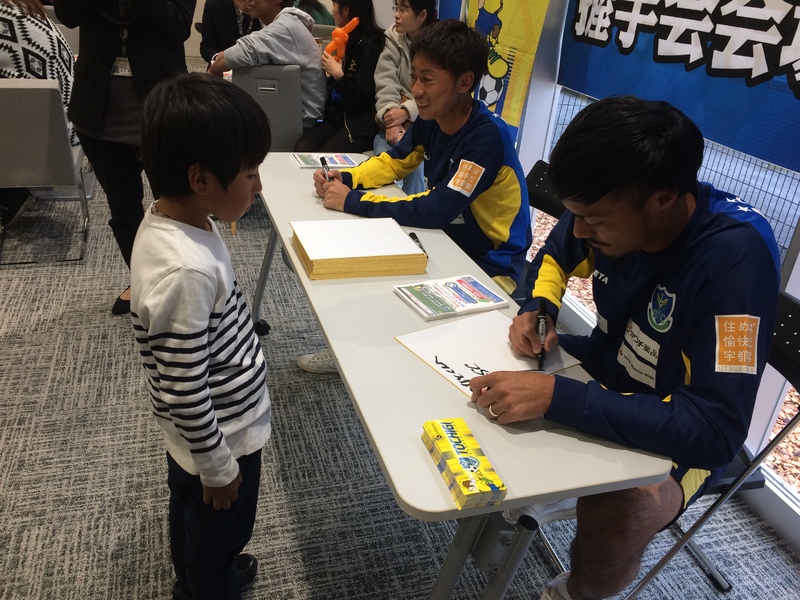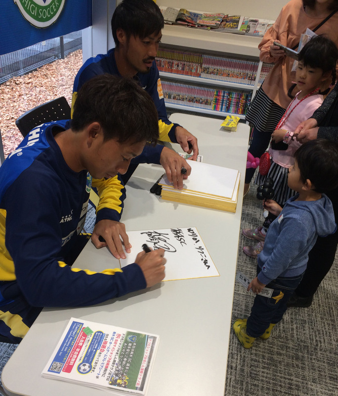 10月15日(日)に栃木SCオフィシャルパートナーの株式会社ハヤブサドットコム様が運営するドコモショップかましん清原テクノ店リニューアルオープン記念イベントに、前日貴重な得点を決めた菅和範選手と今季初スタメンとなった和田達也選手が参加しました。