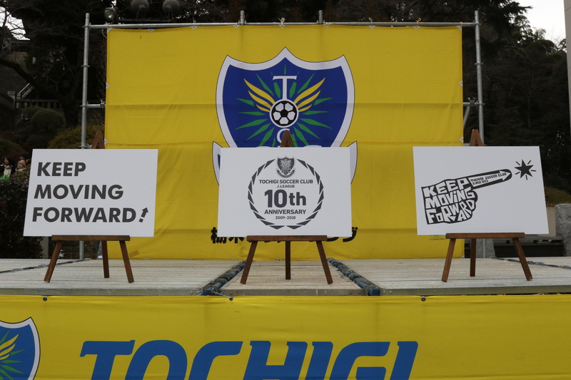 会場にて、栃木SCは今シーズンでJリーグ加入10年目を迎えるため、栃木SCJリーグ加入10周年ロゴを発表いたしました。