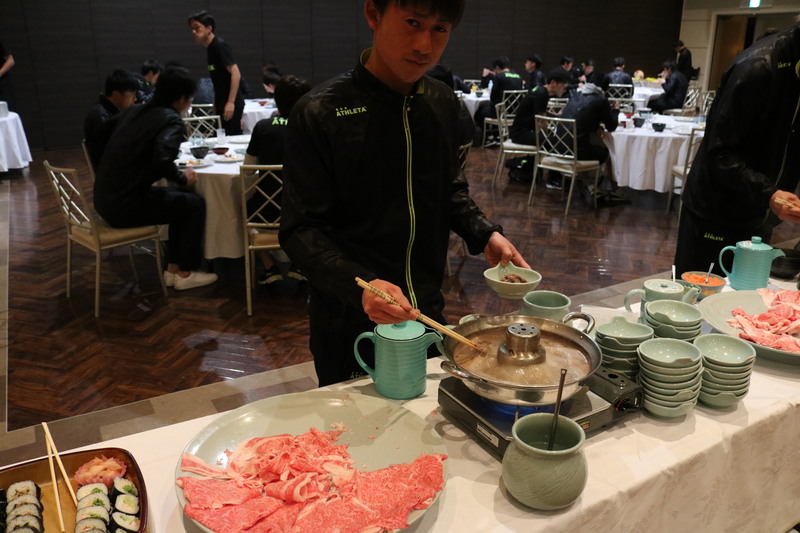 選手たちはおいしい食事をしっかりと食べて、明日のトレーニングに備えていました。