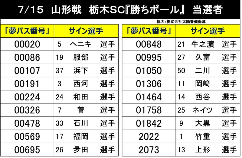 【夢パスホルダー対象】モンテディオ山形戦『勝ちボール』当選者のお知らせ