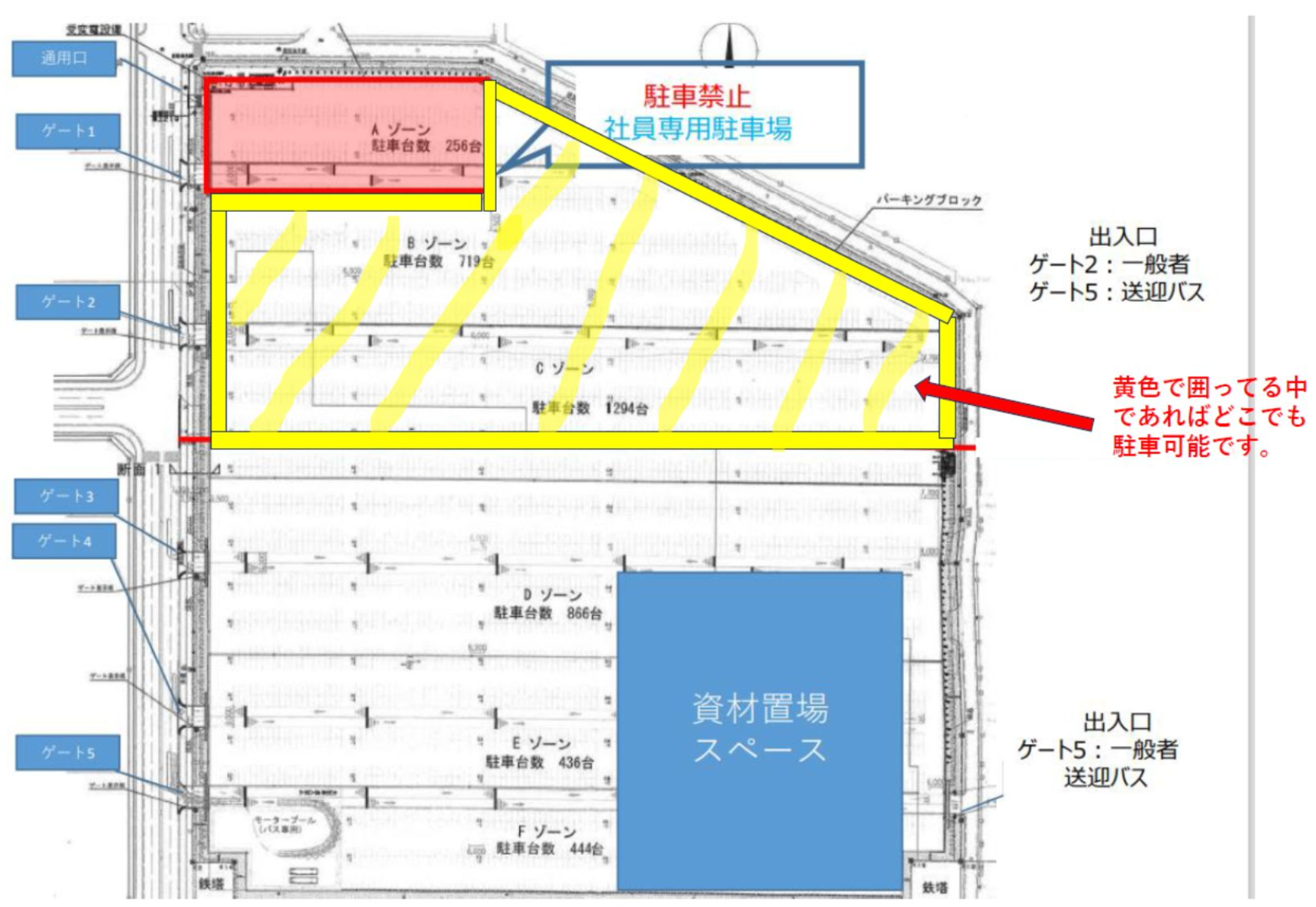 ※キヤノン様駐車場をご利用の場合は、駐車可能エリア内への駐車をお願いいたします。