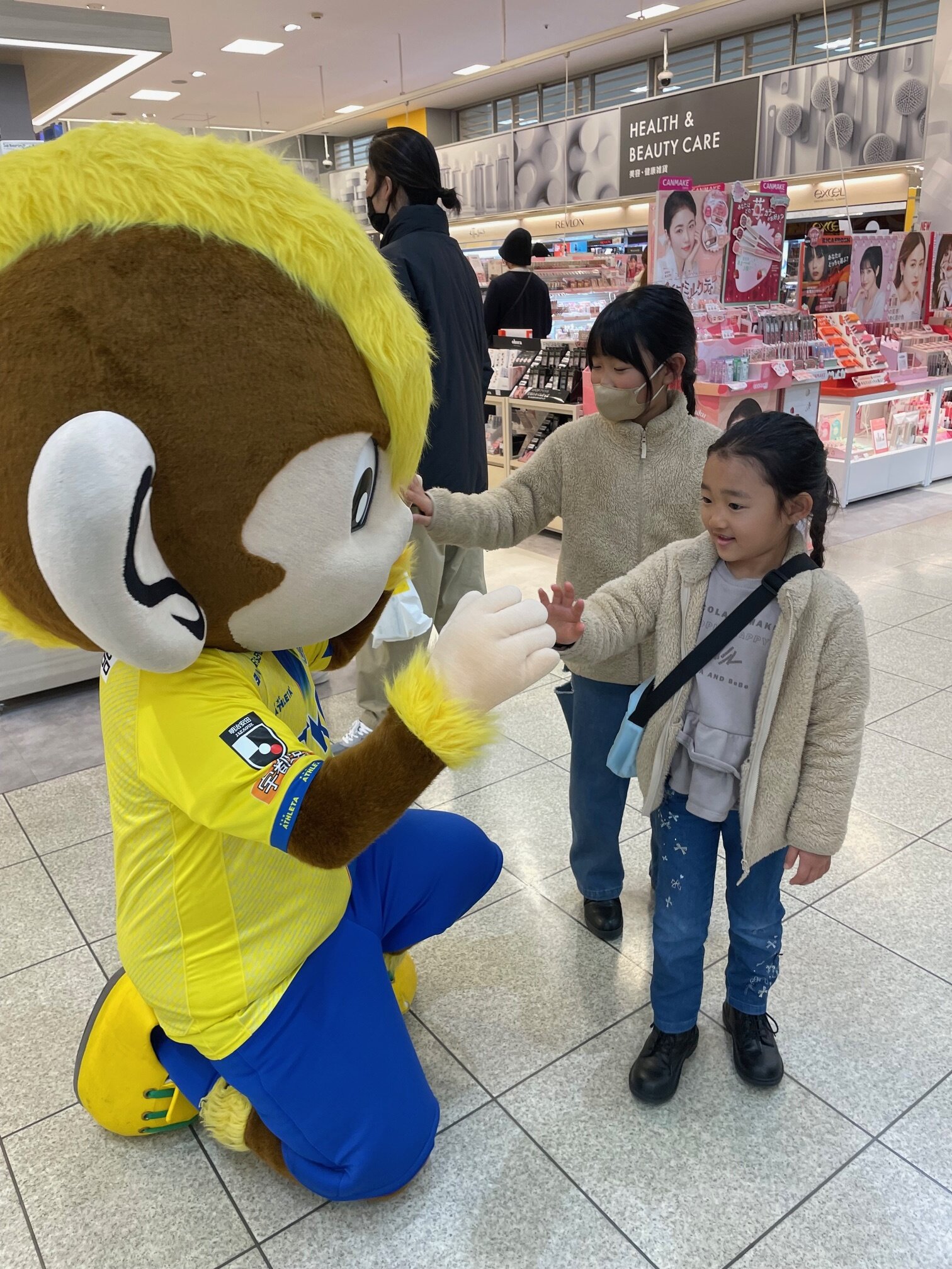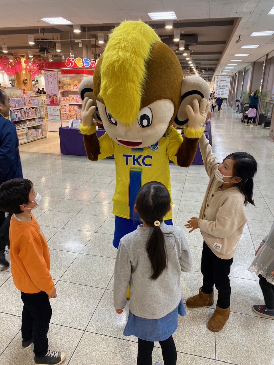 トッキーもお買い物を楽しむお子様と写真撮影をしたり、ポケットティッシュ、チラシにて開幕戦のご案内をさせて頂きました。