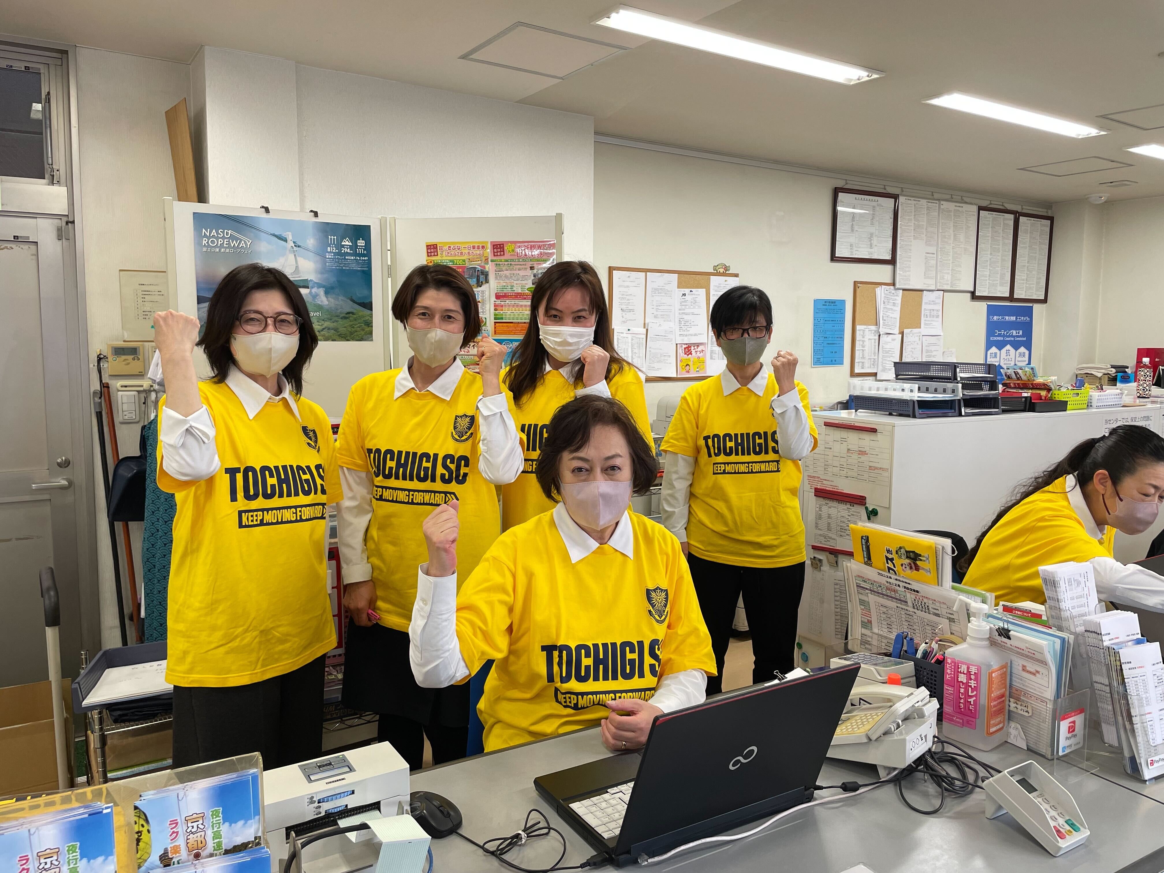 日頃からご支援を頂いているパートナー企業様でも開幕に向けて社員様が栃木SCのTシャツを着用して応援ムードを作って頂いています。