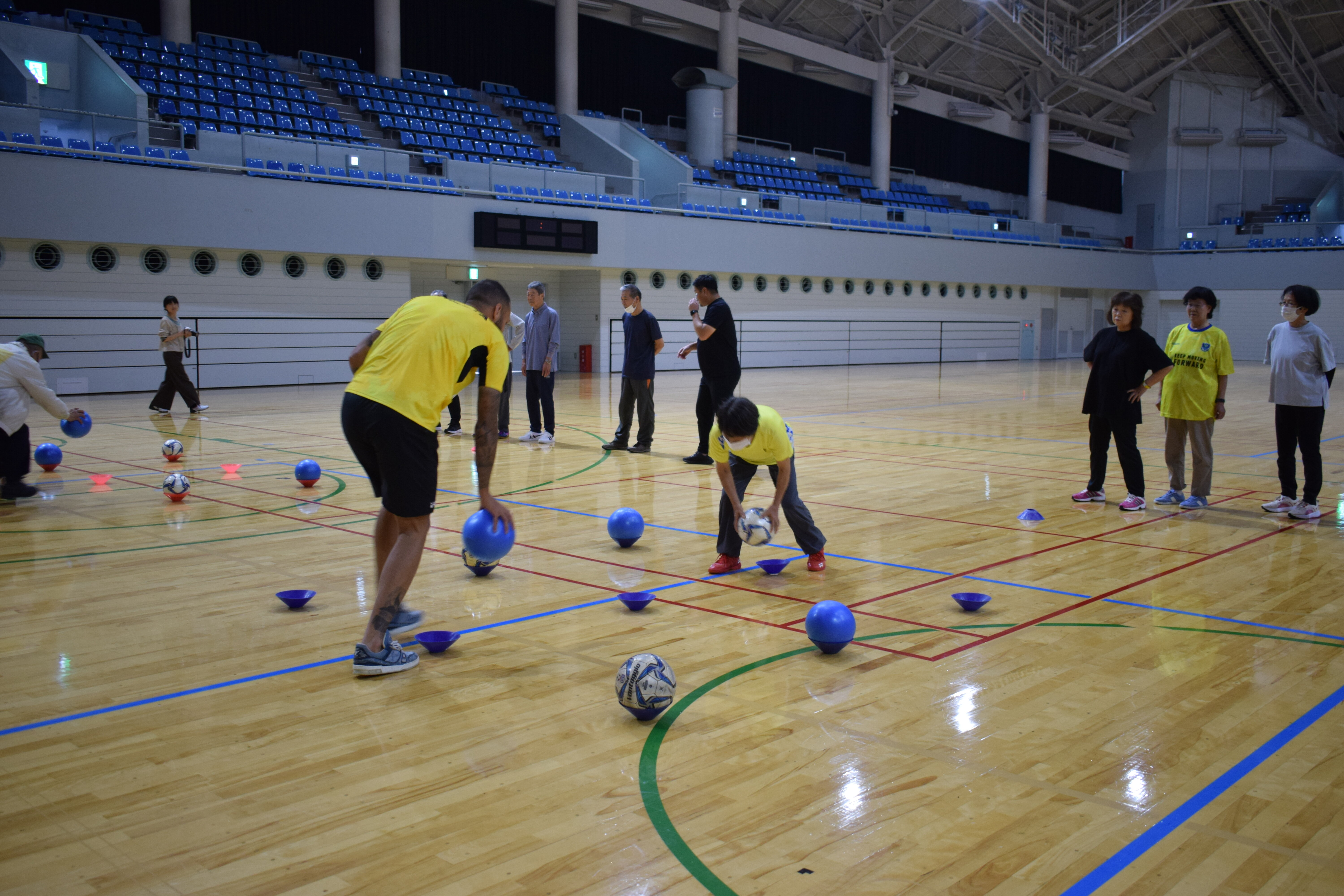 10月19日(木)清原体育館 主競技場にて、宇都宮市からの受託事業である介護予防事業「栃木SCいきいき健康サッカー教室」を実施致しました。この教室は宇都宮市内在住の65歳以上の軽い運動のできる方々を対象に、サッカーを通して健康維持増進を図り、要介護状態になることを予防することを目的としています。
