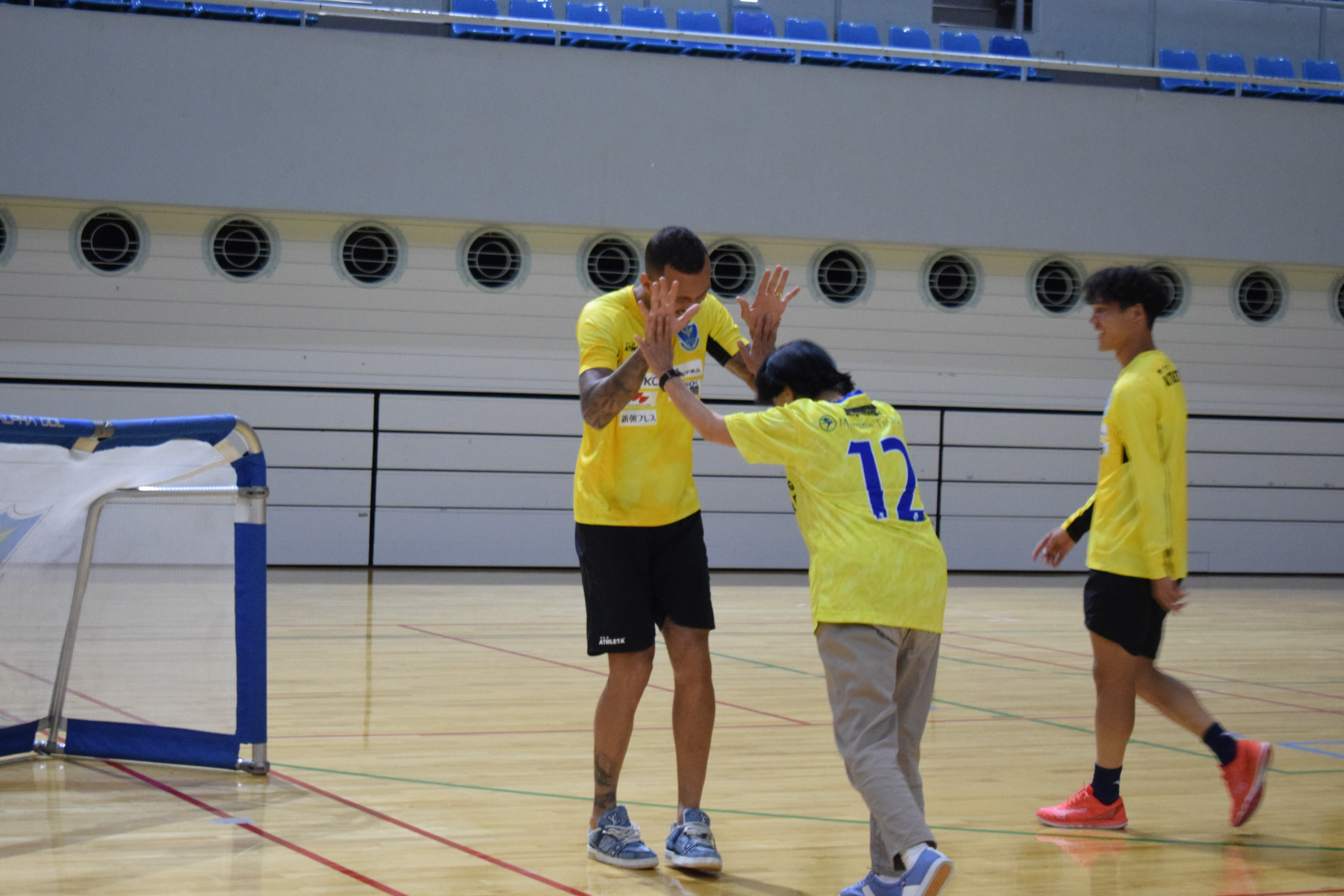 ゴールが決まってハイタッチ。