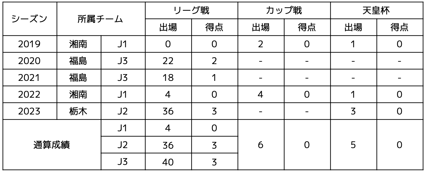 豊川FC→松橋中→大津高→湘南ベルマーレ→福島ユナイテッドFC→湘南ベルマーレ