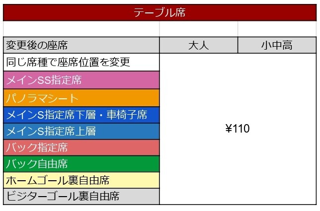 ◼︎ 別席種へのダウングレード:手数料110円/枚