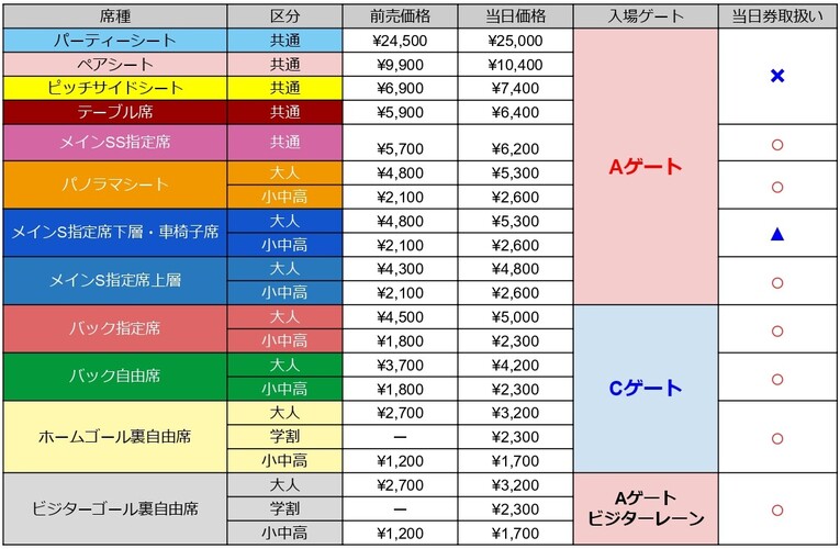 また、一部席種は当日券の販売がございませんのでご注意ください。