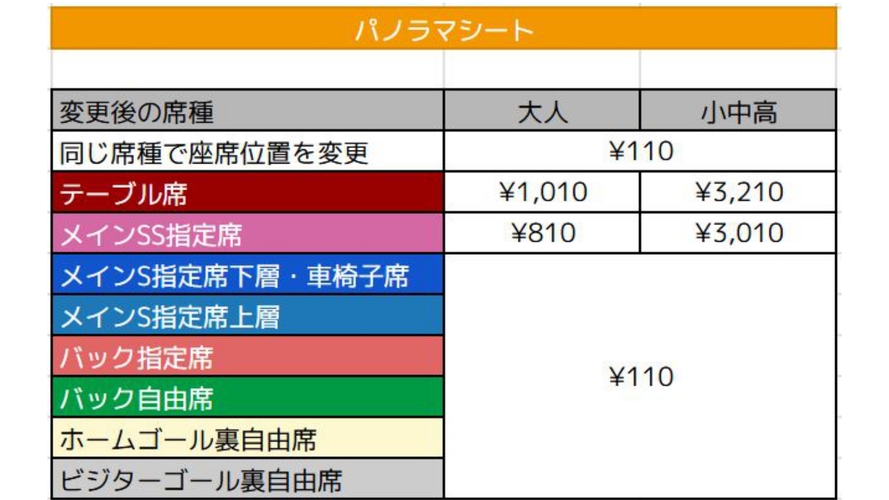 ◼︎ 別席種へのダウングレード:手数料110円/枚