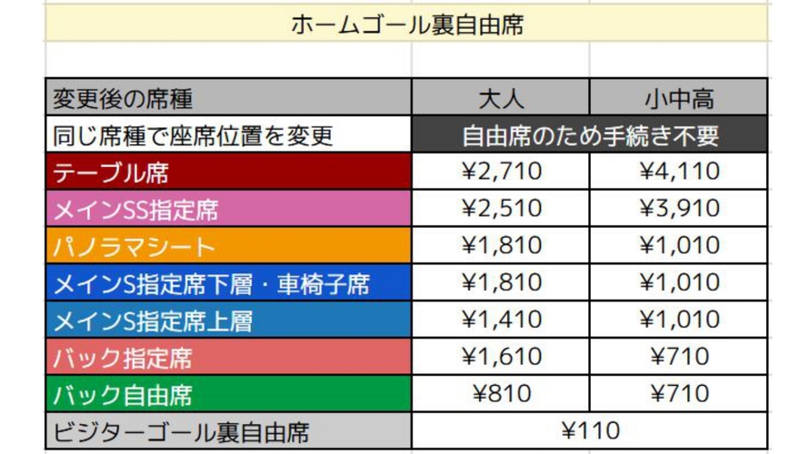 ※販売が終了した席種への変更はできませんのでご注意ください。