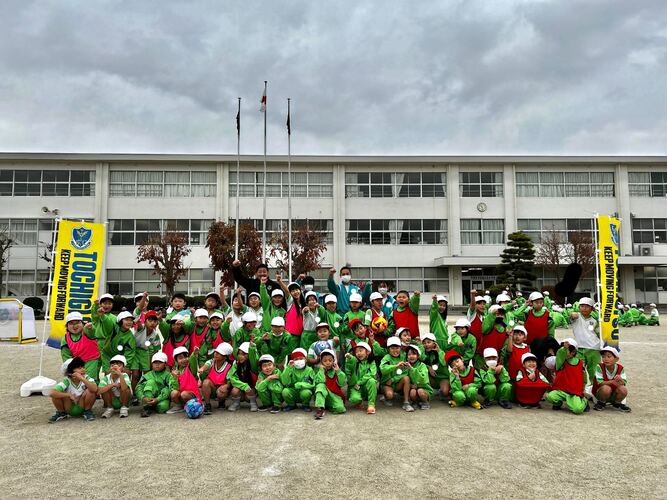 宇都宮市内の小学校に栃木SCのコーチやスタッフが訪問し、サッカーの授業をするプロジェクト。訪問させていただいた小学校にサッカーボールのプレゼントを行い、子ども達が継続して「外遊び」を楽しんでいただく環境支援と共に、子ども達へ食育プリントを配布し、食育の理解を深めていただき、子ども達の健やかな成長を支援する活動です。