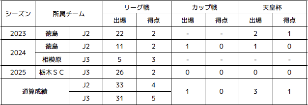【経歴】横浜F・マリノスプライマリー→横浜F・マリノスJrユース→横浜F・マリノスユース→国士舘大学→徳島ヴォルティス→栃木SC