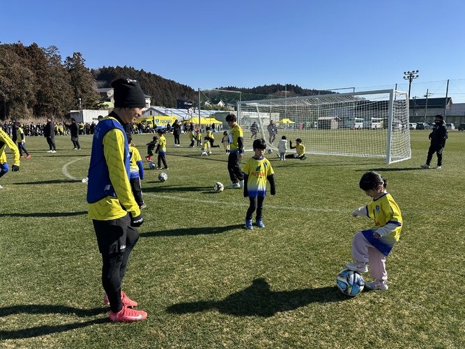 トレーニング後には、芝づくりに関わっていただいた子どもたちがピッチに立ち、ボール遊びを楽しむ時間を設けました。
