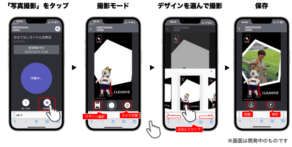 「オリジナルフォト撮影サービス」は、限定デザインのデジタルフォトフレームで写真撮影ができる機能です。マスコットなど、会場でしか撮影できないデザインのフレームをご用意しております。ぜひ来場の記念に撮影をお楽しみください!