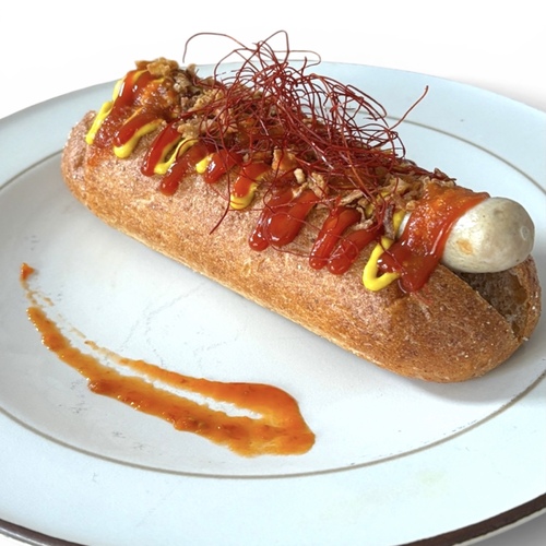 刺激的なハバネロと野菜の旨味が濃縮されたハバネロソースをかけた絶品旨辛ホットドッグです。