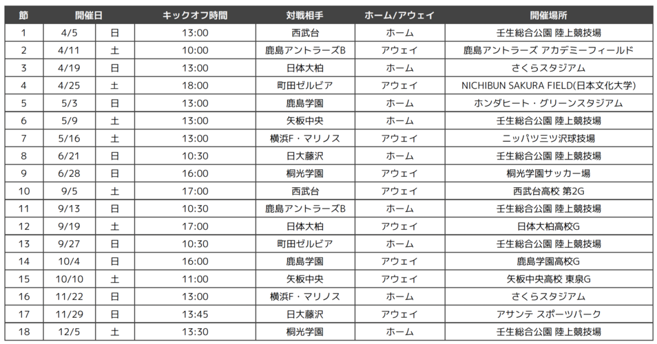 【U-18試合情報】「高円宮杯 JFA U-18 サッカープリンスリーグ2026 関東2部リーグ」試合日程のお知らせ